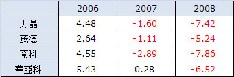 【表二】台灣 DRAM 廠商 2006 ~ 2008 年 EPS