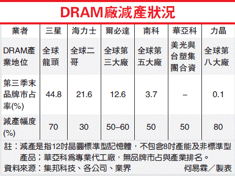 為了應付面板部門與晶圓代工部門龐大的開支,三星只能從領導地位較為穩固的 DRAM 產業下手,希望大幅減產能提振 DRAM 價格,進而使 DRAM 部門轉虧為盈。如此一來,不但能降低不必要的開支,還能獲得更充裕的資金投入面板與晶圓代工部門。