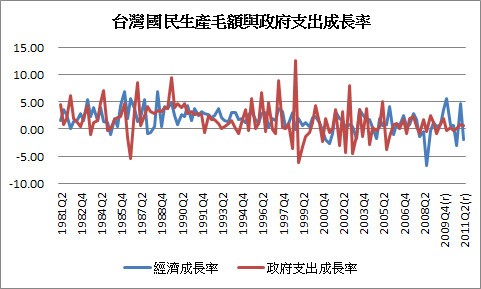 【圖一】台灣 GDP 與政府支出成長率 (百分比)