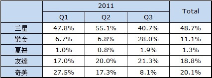 【表一】SONY TV 面板供應來源 (資料來源:NPD DisplaySearch)