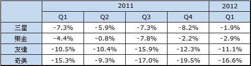 【表二】全球主要面板廠營業利益率 (三星 LCD 事業不含 SMD)