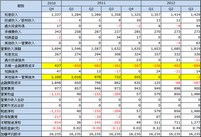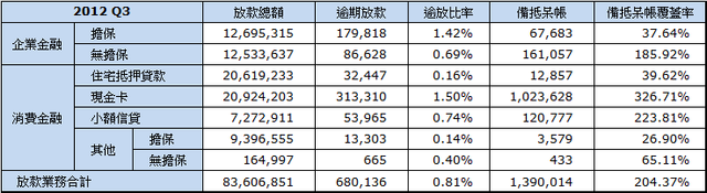 【表三】萬泰銀 – 資產品質 2012 Q3