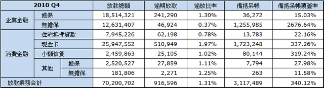 【表二】萬泰銀 – 資產品質 2010 Q4