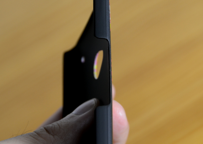 安裝上非常容易,只要先將手機左側裝入後,再將右側扣入就可以,保護殼的設計相當精準,所以中國的雙卡版雖然只厚一點點,但就不適用了。
