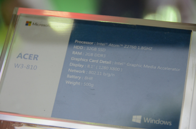 ACER 正式發表首款 8.1 吋 Windows 8 平板電腦 Iconia W3,特點在於 1280 x 800 螢幕解析度、16:10 的螢幕比例以及內建 OFFICE 軟體,讓文書、商務、娛樂都將有更好的視覺享受。