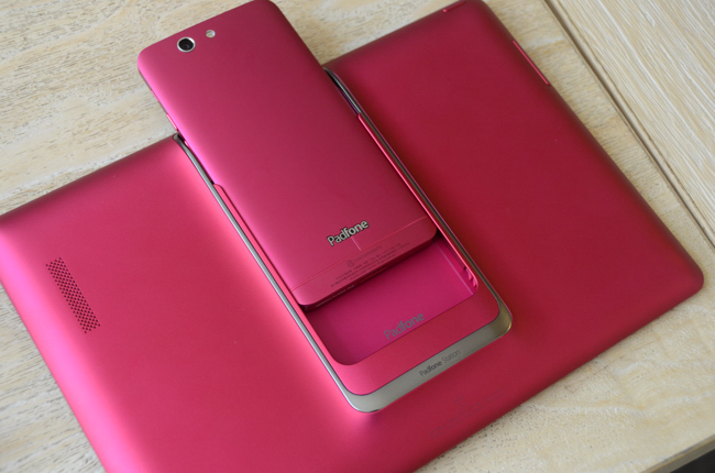 Padfone Infinity手機採用全金屬機身,並具有金屬切邊,鋁合金一體成型設計,加上金屬髮絲紋表面處理,冷冽的機身完全襯托出高階質感。而桃紅色款也是使用一體成形的鋁合金背蓋,但少了陽剛味較重的金屬髮絲紋改用噴砂處理,更適合女性朋友使用。