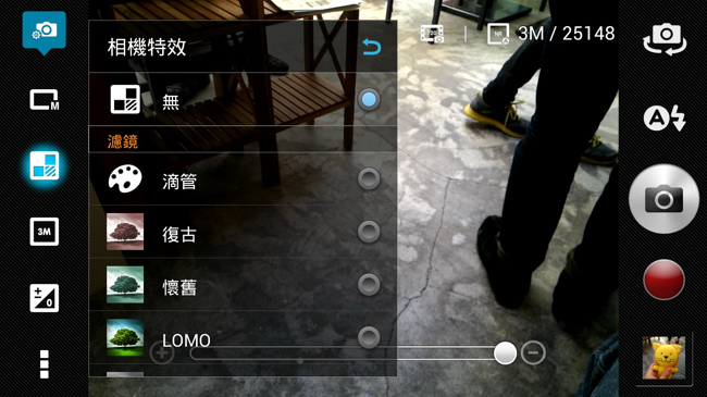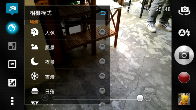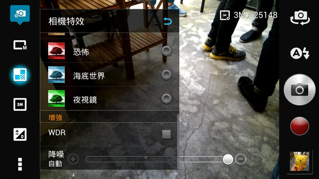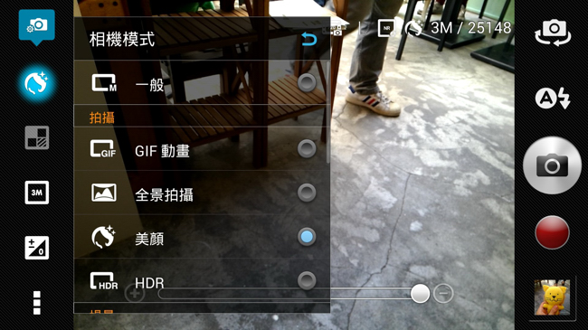 拍照軟體部分,當然對於一般手機拍照的濾鏡、場景都相當齊備。也有最受女性朋友喜愛的美顏模式與背光下可以拍出清楚照片的HDR。