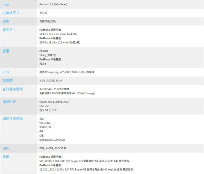 在規格部分,就讓大家參考一下官方的規格表囉!