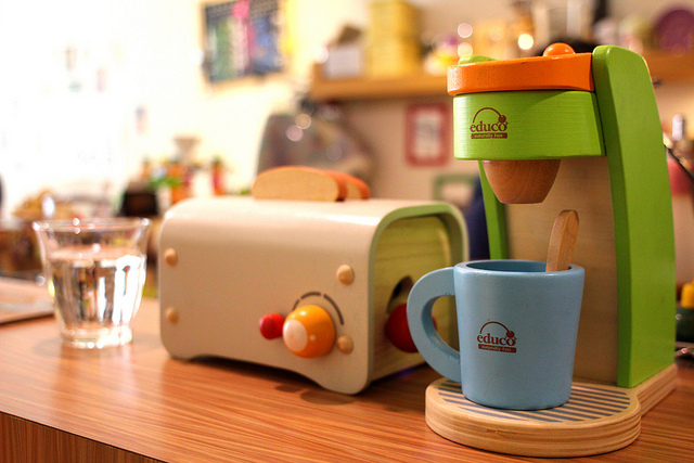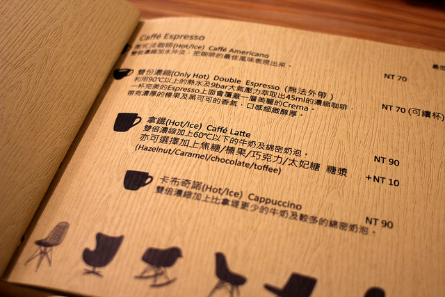 吧檯上除了給女兒玩的木製玩具咖啡機之外,其他的器具都是專業到一個不行,從世界盃咖啡大賽指定使用的 SIMONELLI 義式咖啡機、錐形磨盤的 MAZZER ROBUR 磨豆機、負責單品咖啡的小富士磨豆機,所選用的咖啡豆來自中台灣扛霸子的 Mojo Coffee,這樣的規格已經在大多數咖啡館裡排名靠前。