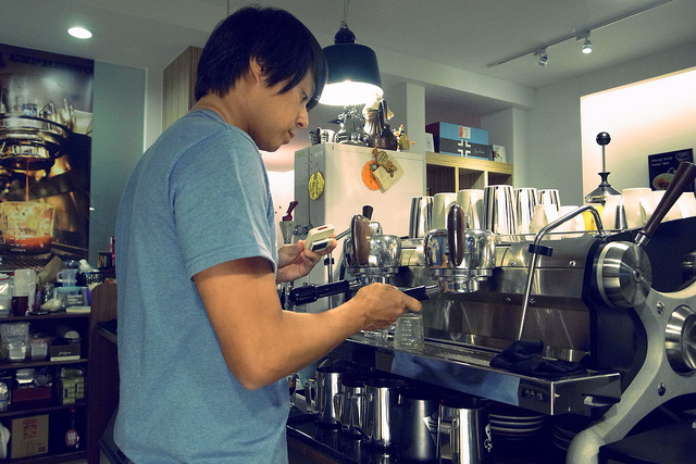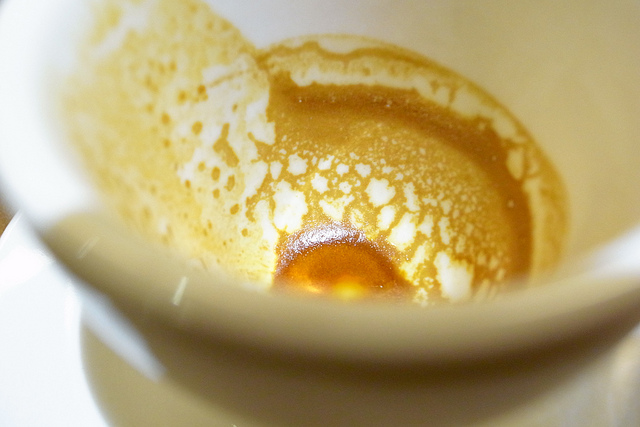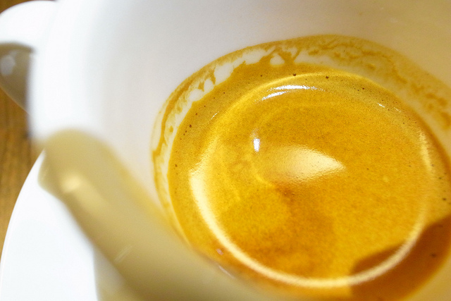 義式配方豆在烘焙完成後會先養豆十天以上再拿出來使用,易斯特咖啡萃取 Espresso 所使用的是 Slayer 義式咖啡機搭配 ANFIM 磨豆機的組合,以19公克的咖啡粉萃取出35CC的 Espresso,沖煮水溫設定在89℃。