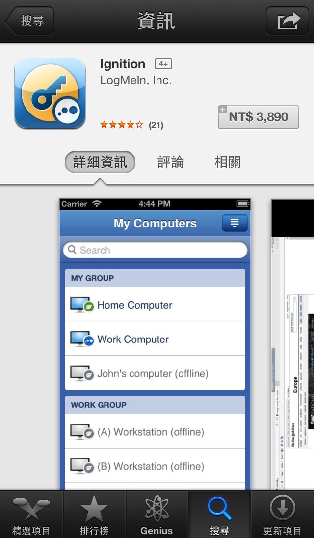 這是一款類似遙控器功能的app。可以讓你透過iPhone或是iPad來遠端遙控家中電腦等電腦裝置的app。根據App Store上說明,除了能夠進行 Air Print,還可以將遠端電腦中的影片傳到手上的行動裝置、照片分享與管理,聽起來,似乎…… 實用的多了?!