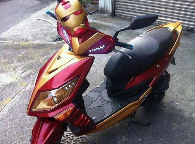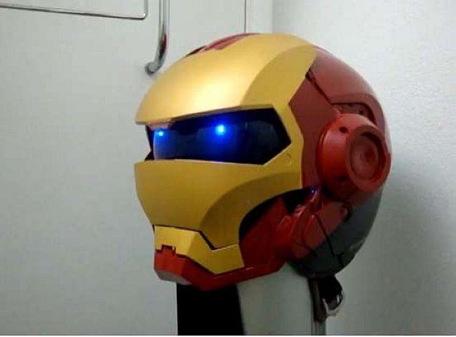 這應該是台灣製造的吧!鋼鐵人頭盔安全帽,那個會發光的眼睛會不會影響行車安全呢?