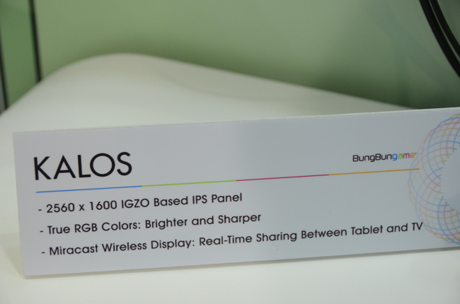 BungBungame 戲智科技 在展場中展出使用Sharp面板IGZO IPS顯示器的平板電腦KALOS,高達298.9dpi的高密度像素,讓平板的畫質非常的綿密且細緻,幾乎就像在觀賞紙本一樣。