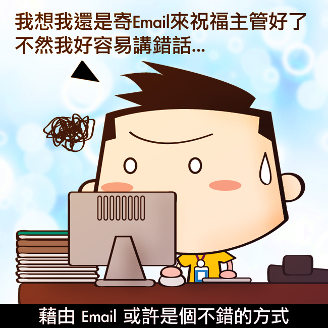 分享個 HR 同事給我的經驗:在公司裡因為有些話不能亂講,有些話只能私下講,有些話只能對某人講,卻又想留下對話記錄,因此 E-mail 就這樣發明出來了…其實我們用 Mail 不只傳遞公事,也傳遞著情感。像有些說不出的話,我們往往都會用 E-mail 來傳達!