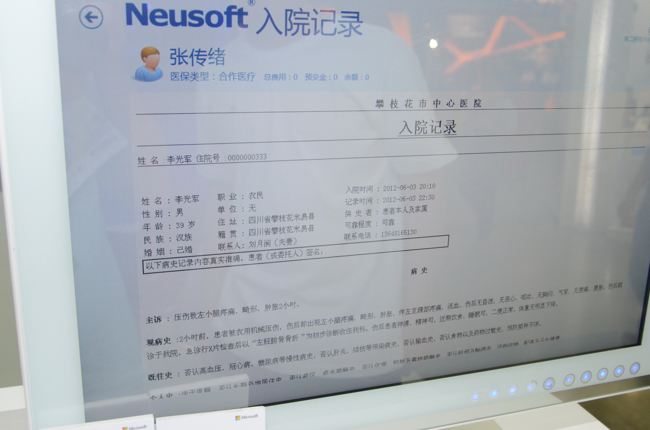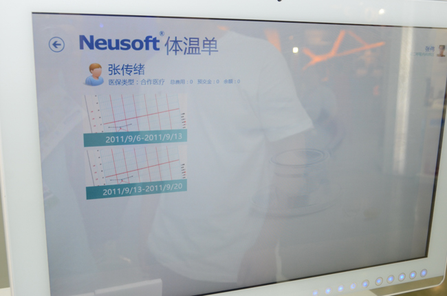 另外,在這裝置上當然也有針對醫療所需的資訊,只要使用特定的卡片,就可呼叫出病人的病歷與所需接受的治療,當然像是服藥紀錄、換藥紀錄、點滴配方…等等的醫療資訊都可以在上面顯示,有了更多的資訊,可避免醫療上的失誤產生。