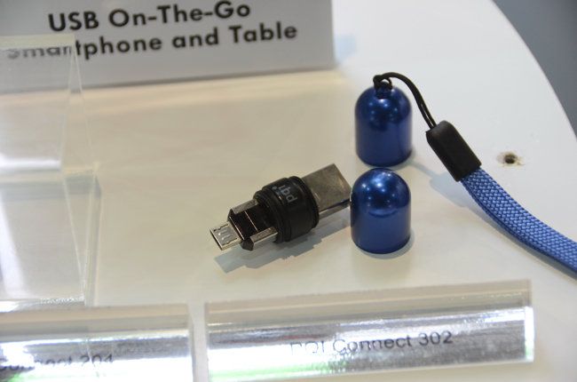 pqi 在 COMPUTEX Taipei 2013 發表了多款產品,打算發掘這未來深不可測的行動裝置市場。像這款吊繩設計的 pqi Connect 202 ,可以讓電腦讀取隨身碟或是行動裝置中的資料,既方便又好收納。