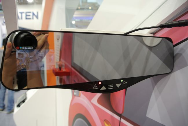 另外在 COMPUTEX 展場 Mio 也展示最新開發的後照鏡型行車記錄器,讓愛車前檔不再掛滿東西,即錄即看真方便。