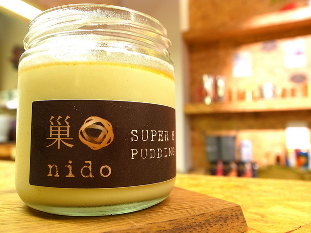 大叔拙劣的攝影技巧和文筆根本無法將這超級八布丁的十分之一美味呈現在大家面前!口感紮實卻又綿滑細緻的超級八布丁是用新鮮雞蛋製作而成,入口就是濃濃蛋香卻又非常清爽不膩,搭配淋在上頭有著森永牛奶糖般香氣的特製焦糖醬,小的我馬上從椅子上站起來向巢nido老闆兼甜點師噗魯斯先生致敬。