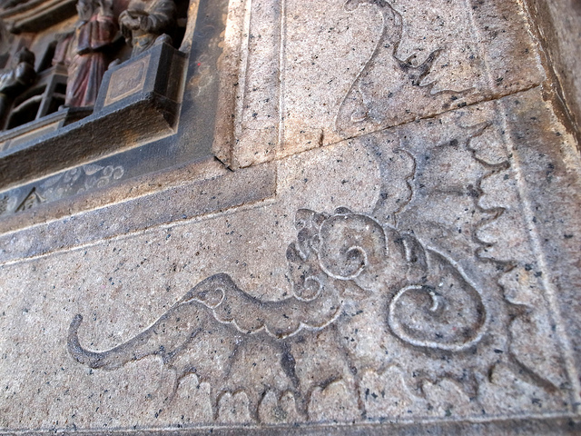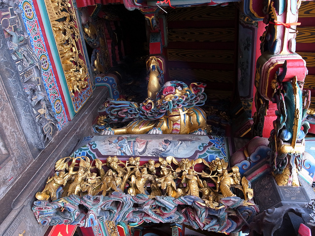 北港朝天宮廟門上方,神態逗趣栩栩如生的獅子雕像。