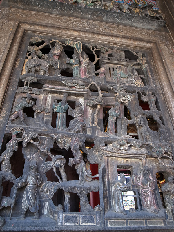 各種忠孝節義民間故事的石雕窗欄、交趾陶。