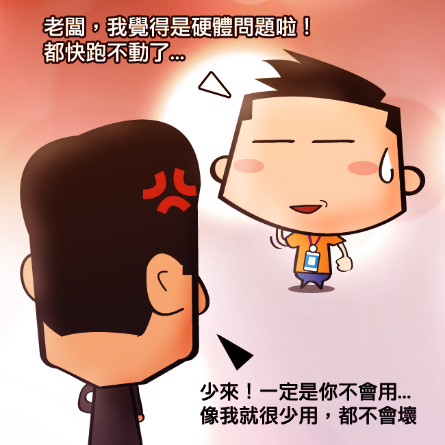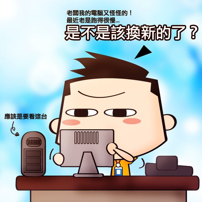 你看!我幫你軟體整個更新了… 真的嗎?謝謝老闆!我看看喔!
