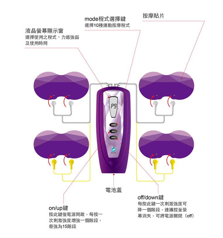 別看這小小的一片東西,居然可以模擬我們真人的按摩動作,據官方說法,有揉捏、拍打、震動、按壓、搥打、指壓、舒筋、推拿…等 70 種的按摩方式,一天試用一種按摩方式,還可以讓你用到兩個多月!