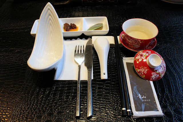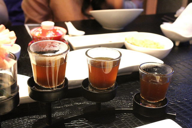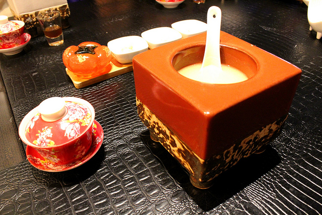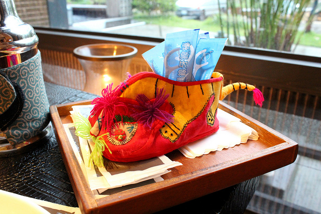 來這裡最好先訂位,雖說是無菜單料理,但是用餐前還是會詢問肉類主食要選哪一種,豬牛魚之類的。上菜前,佐料盤裡有個蜂蜜石蓮花,還有杯桂花釀茶飲,酸甜開胃。