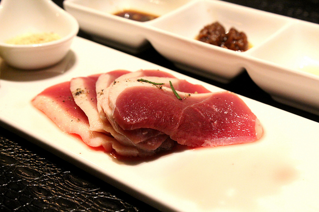 宜蘭櫻桃鴨肉,在火熱的石板上自己DIY燒烤。