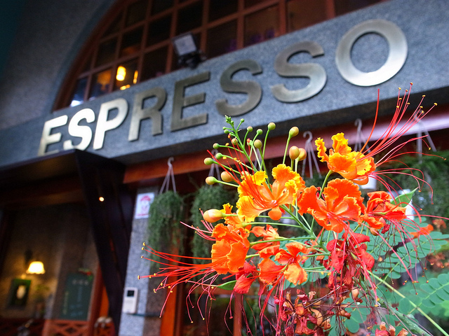 斗大的ESPRESSO可不是寫假的,在哥倫布咖啡館裡,只要是你選擇的是單品咖啡,三哥都會用義式咖啡機萃取濃縮咖啡後再兌水,他喜歡這樣的風味口感,也希望客人們能和他一起分享這樣的體驗。