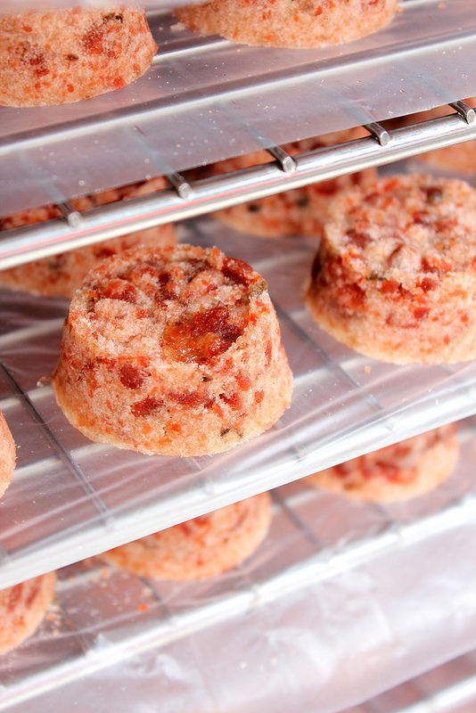 剛出爐的李仔糕,一層一層的在架子上等待被包裝。