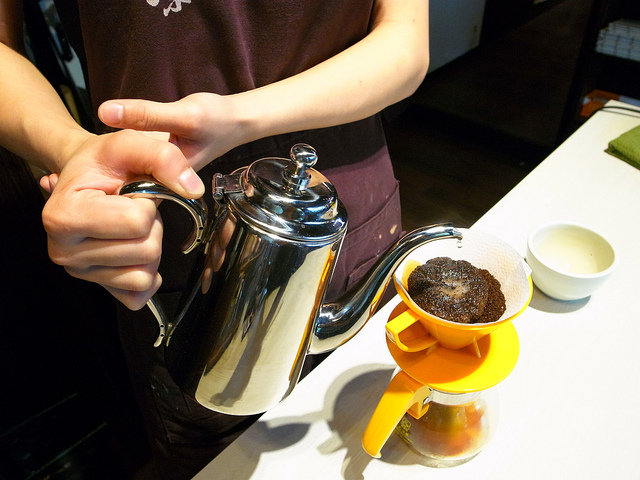 先滴後沖,讓咖啡的風味被完整的釋放出來。