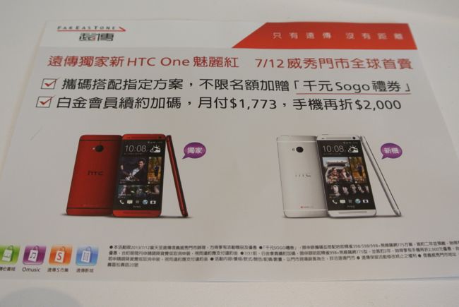 這次與遠傳獨家合作搶在全球首先推出的紅色New One 除了空機售價同樣為NT.21,900以外,還有搭配遠傳的優惠資費方案。
