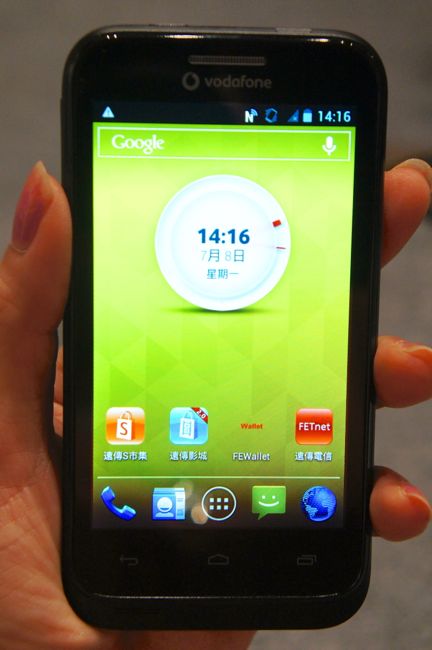 不過今天會場除了眾多NFC便利功能以外,還有與遠傳獨家的Vodafone Smart III也趁次亮相。這款SMART III 雖然僅有著4″觸控式螢幕、1GHz 單核心處理器、512MB RAM/4GB ROM、500萬畫素相機、1,500 mAh可換式電池。不過空機單價也只要NT.4,990,預計七月中上市。