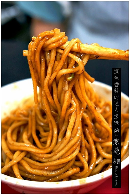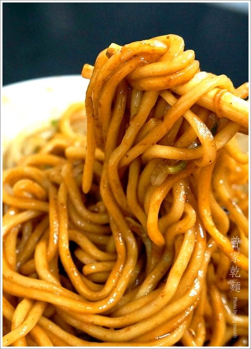 ▲招牌乾麵淋上深色的醬料,甜甜的口味愈吃愈「涮嘴」!