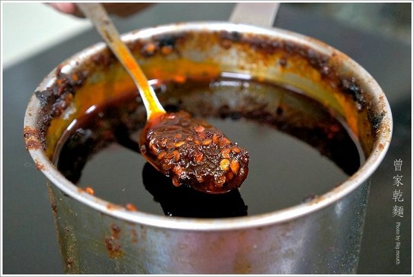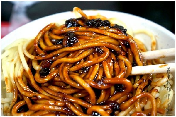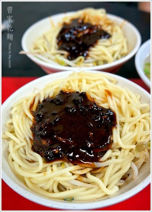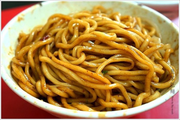 店 內的招牌乾麵使用傳統油麵、碗底鋪上滿滿的豆芽菜,最後淋上特別的黑色醬料,這種深色的醬料有點類似甜麵醬加上炸醬的結合,口味偏甜嘗起來又開胃, 與麵條攪拌後色澤誘人,搭配碗底的豆芽菜一起吃,口感好且清爽,吃辣的朋友記得加上店家自己炒的辣椒, 不但不破壞麵的口味,並且還會多了特殊的香辣滋味。