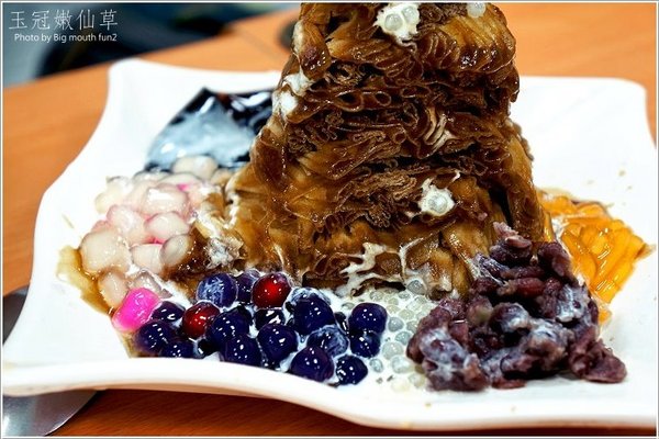 大家可能會想說嫩仙草台灣本島很多啊?為什麼要特地到澎湖吃這東西呢?這也是我曾經想過的問題,不過當這盤「綜合翡翠嫩仙草刨冰」(50元)上桌後,一切問題都有了解答。