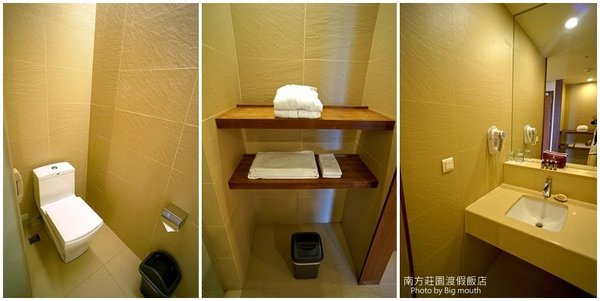 廁所硬體部分還不錯,使用起來舒適又清爽,唯一吹風機設在洗手台旁使用上比較不方便,因為線不長,又必須在洗手台這裡吹頭(長頭髮的女性朋友應該會吹到手很酸吧)