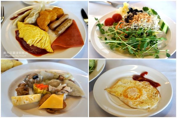 我也喜歡南方莊園的早餐,同樣是自助吧的方式提供,有現煎歐姆蛋、太陽蛋、中西式多樣餐點,麵包、沙拉、優格、咖啡機、果汁、牛奶等等,