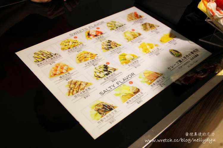 日式可麗餅價位大約60~105元,裡面的餡料不同價格當然會有所不同