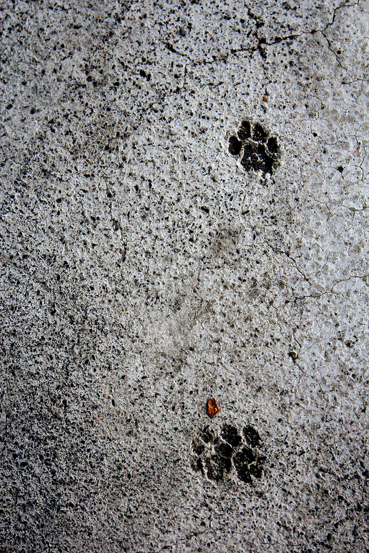 重建時,附近狗狗來湊熱鬧,留下比美阿姆斯壯的腳印,這是我的兩小步,確是狗狗的一大步!