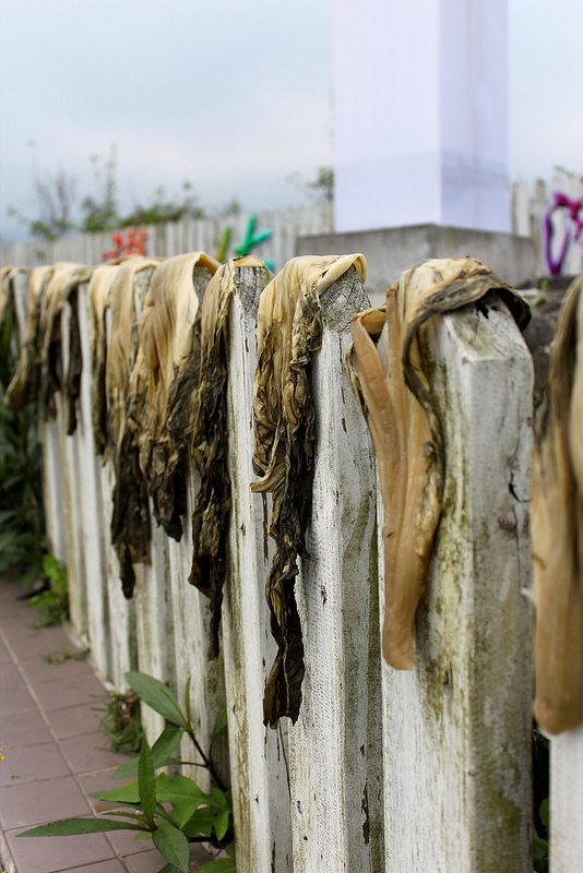 雖說是著名景點,但三星這里還算是鄉下地方生活很單純,住在附近的阿伯就跑來利用柵欄掛上自家的鹹菜,也不怕被偷,趁著日頭趕緊來曬,時間到了再回來收就好。當時不禁想問,阿伯啊!你這個鹹菜有沒有在賣啊?給我們買一些回去當等路。