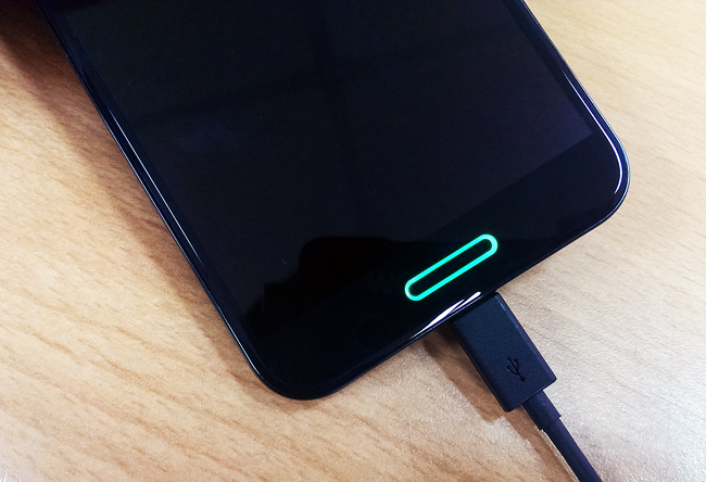 Home 鍵的 LED 燈會依照不同狀態來做提醒顯示,像是來電時會有三種顏色輪著閃亮,訊息方面也會有綠色的提醒燈,像是充電的時候則是紅色的燈光提示。