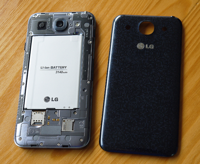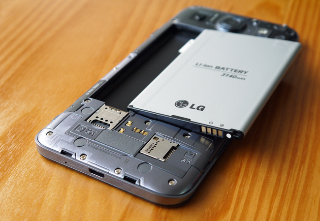 另外的一大亮點就是 Optimus G Pro 的電池了,沿著機身右側下方的小凹槽就可以將背蓋打開了。