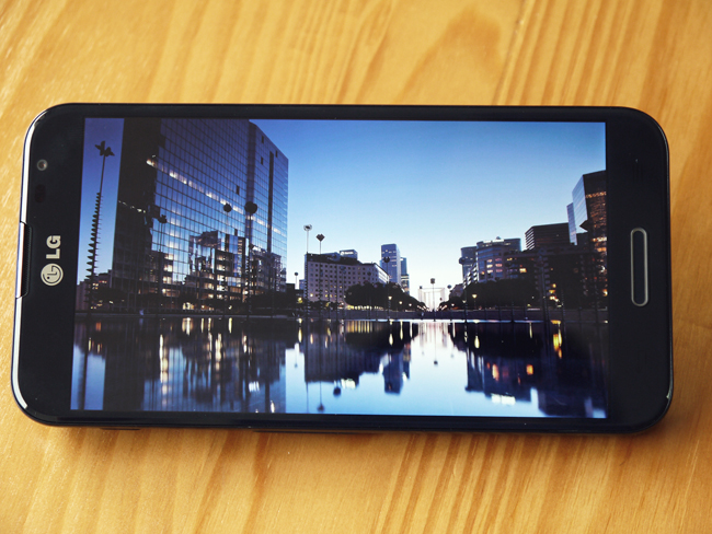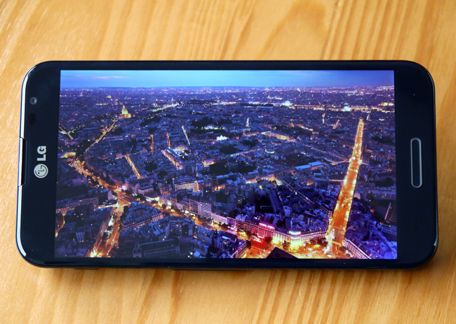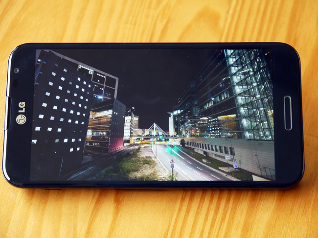 這裡一定要先提一下 Optimus G Pro 這個 5.5 吋 1080P IPS 螢幕,看起來是真的十分銳利細緻,螢幕要做得贏 LG 真的不大容易了。採用 IPS 螢幕,在螢幕對比表現上相當不錯,觀看夜間風景圖片時就相當明顯,有種把照片貼上去的感覺。