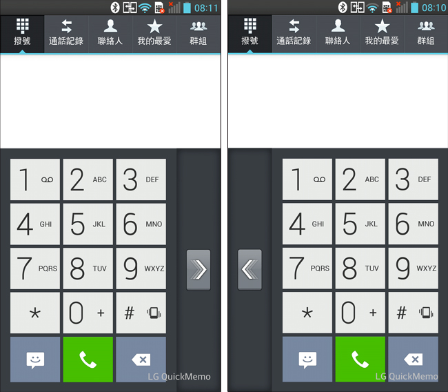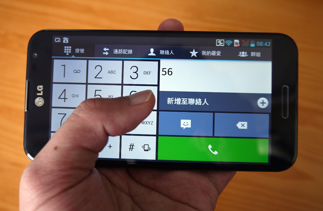 另外在操作上,Optimus G Pro 做了很多細心的設計,就算我們使用的是 5.5 吋的手機,Optimus G Pro 提供了一些單手操作的相關設定,就算我們同時拿著東西,單手操作 5.5 吋的手機也沒問題的!像一般我們若是要輸入電話號碼,儘管按鈕很大,但單手是不是就比較不方便呢?