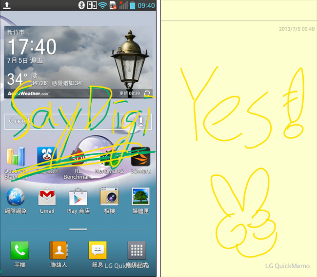QuickMemo 也是一個很不錯的功能,簡單來說就是一個快速的 memo 筆記功能,像有時接電話時,有朋友要我們先趕快記下一個電話號碼或密碼,QuickMemo 就能派上用場了,不用拿什麼筆,隨手就在桌面或各應用程式上註記或是開一張新的 memo 將訊息快速記錄下來,非常方便!