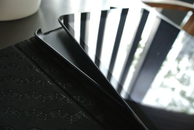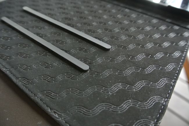 打開後,內側有設計兩條支撐iPad mini的立條,並刻印上波浪形的壓紋來更增質感。