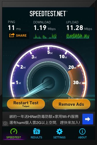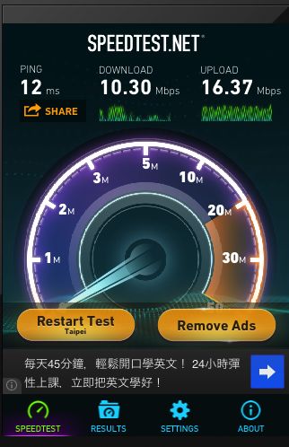 這邊我們也用Speedtest測試了一下沒有裝殼的時候網路環境數據。