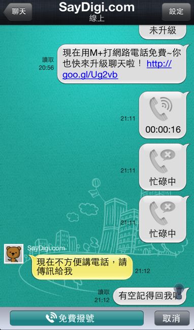 。語音聊天– 除了可以免費聊天,還可以傳送簡訊。