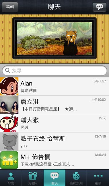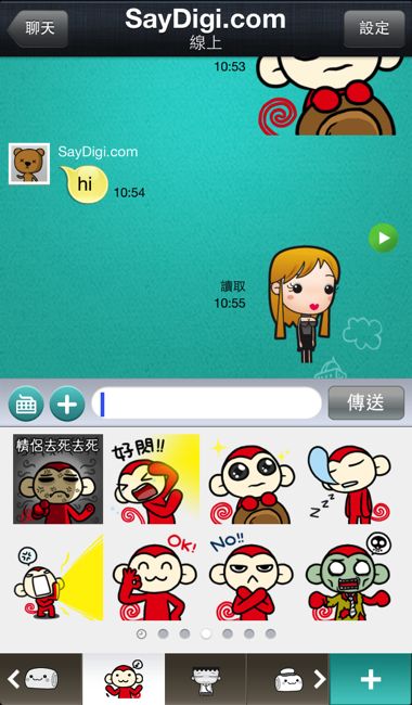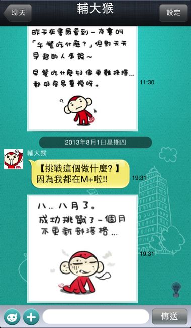 。獨家貼圖– 既然講到貼圖,這已經可以算是通訊app所不可或缺的一項基本功能,不過M+ Messenger既然強調是台灣本土創作,因此也集合著台灣許多知名圖文創作者例如:輔大猴、馬克等的獨特貼圖,我們可以透過生動的表情與巧妙的文字來與好友分享生活點滴,最重要的一點是,貼圖全部免費下載使用,這個超有誠意的,也希望M+ Messenger可以推出更多有趣的貼圖囉!